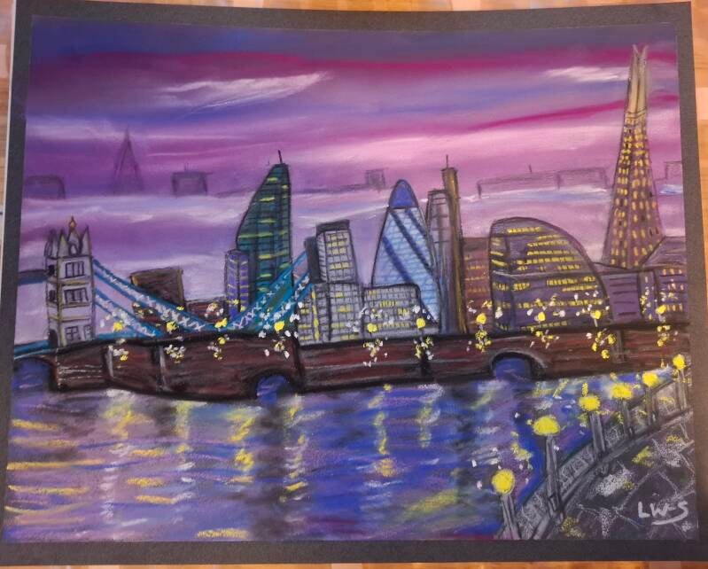 Hometown Glory. Homage to London. March 2026. Soft pastels, pastel pencils and oil pastels on Pastelmat.